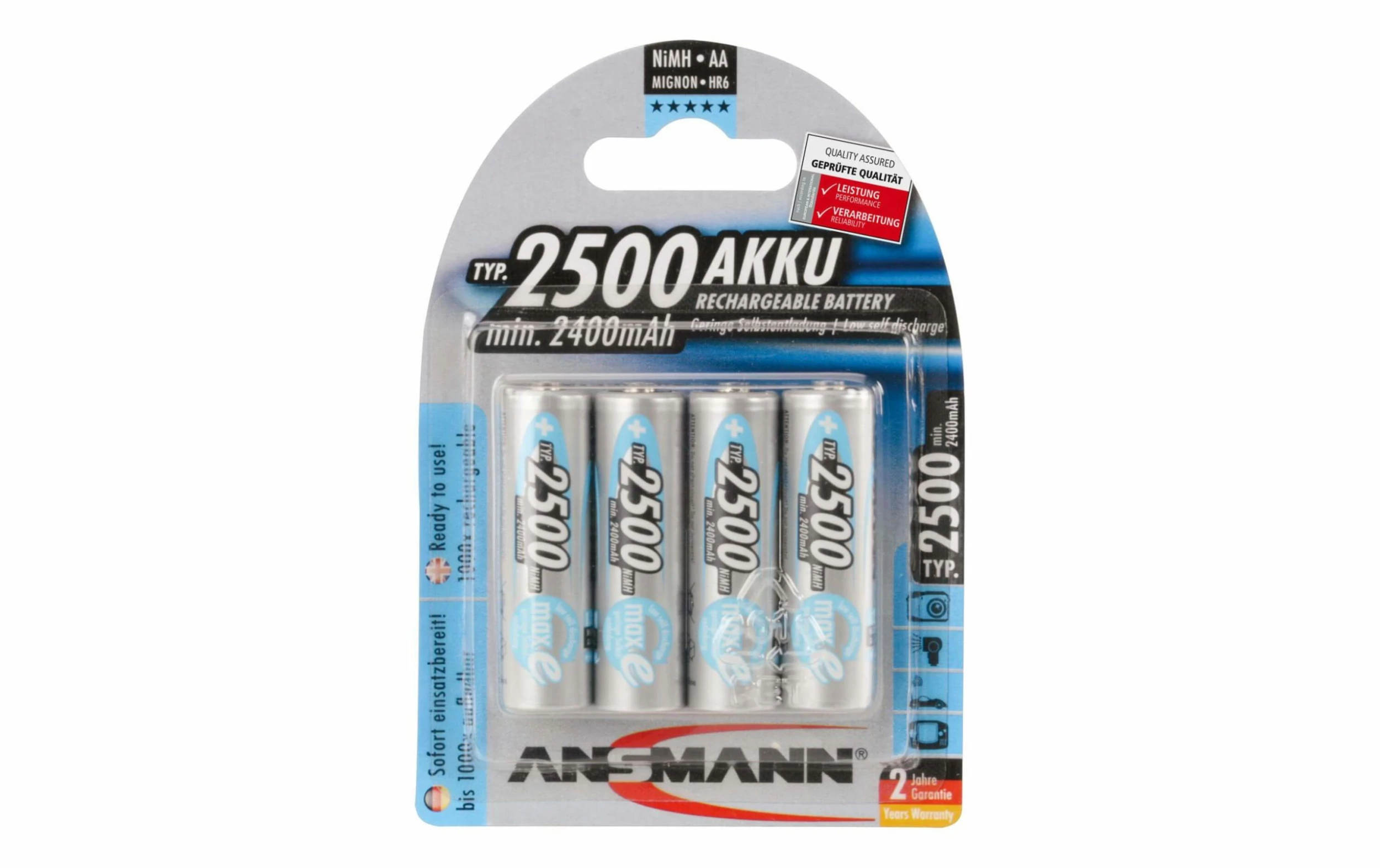 Tension: 1.2 V, Autonomie de la batterie: 2400 mAh, Type d’accu: AA, Unité d’emballage: 4 Pièce/s, Puissance en watts heure: 2.88 Wh, Type d’accu: Nickel-hydrure métallique (NiMH)
