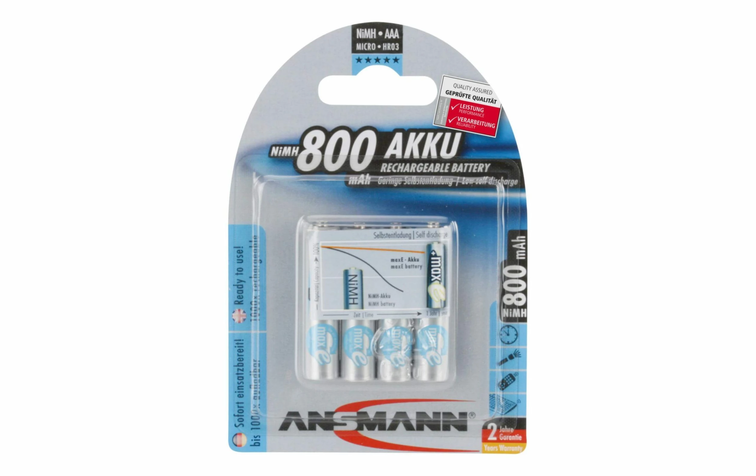 Tension: 1.2 V, Autonomie de la batterie: 800 mAh, Type d’accu: AAA, Unité d’emballage: 4 Pièce/s, Puissance en watts heure: 0.96 Wh, Type d’accu: Nickel-hydrure métallique (NiMH)