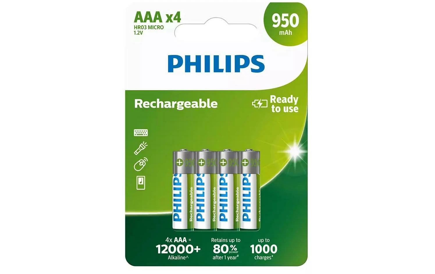 Tension: 1.2 V, Autonomie de la batterie: 950 mAh, Type d’accu: AAA, Unité d’emballage: 4 Pièce/s, Puissance en watts heure: 1.1 Wh, Type d’accu: Nickel-hydrure métallique (NiMH)