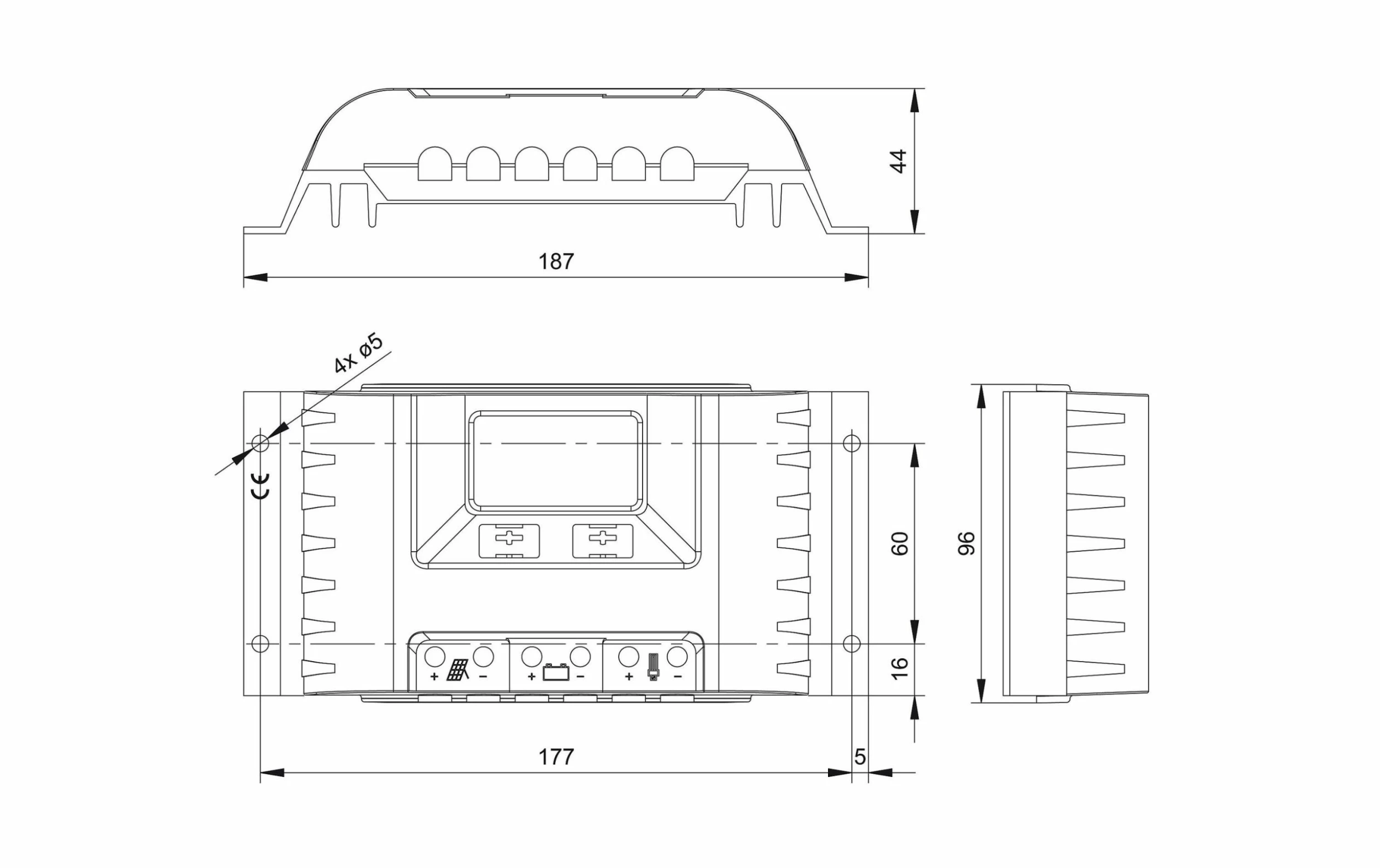 – Protection contre la surcharge et la faible charge ainsi que contre l’inversion de polarité du module, de la charge et de la batterie.